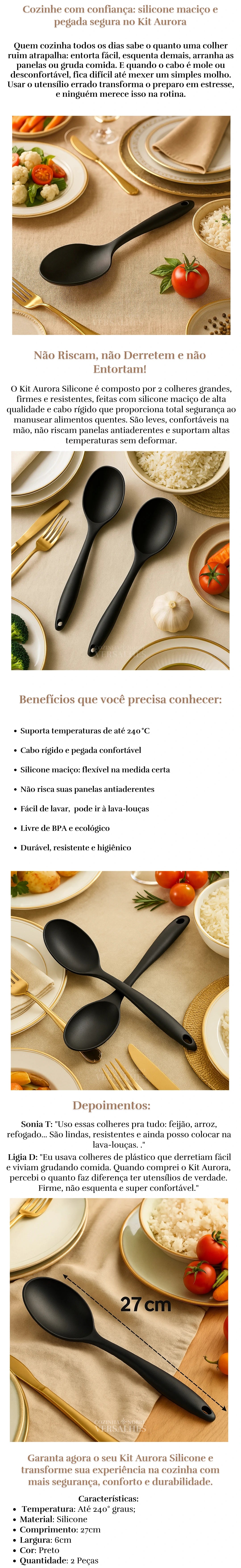 Kit Aurora Silicone: 2 Colheres Antiaderentes Livres de BPA